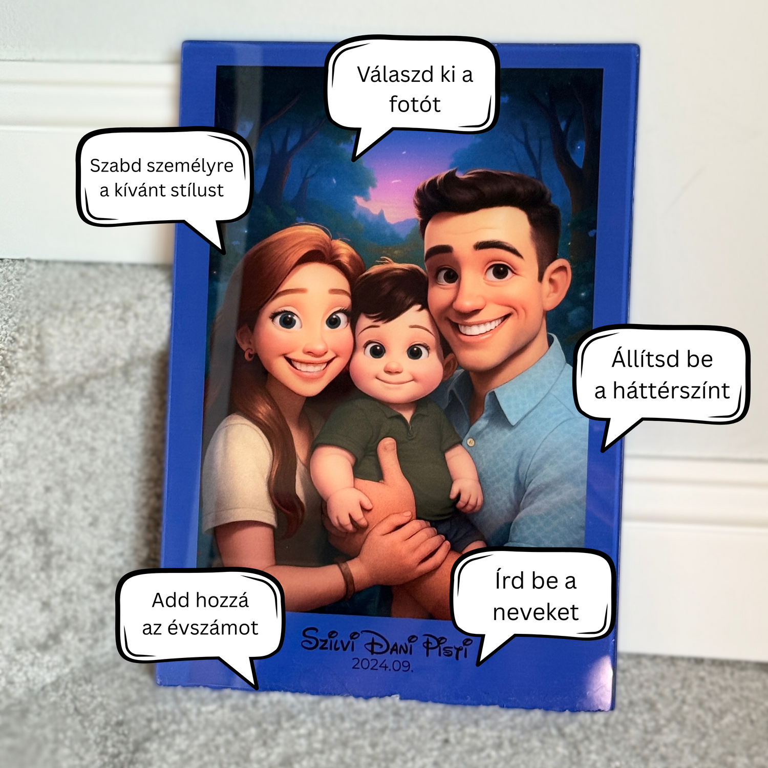 Minden apró részletet Te választhatsz meg – a neveket, dátumokat, színeket és a közös képet is, így az ajándék valóban csak Rólatok szól. A teljes szabadság élménye teszi különlegessé: úgy alakíthatod, mintha egy saját filmet, mesét vagy festményt alkotnál, amelyben Ti vagytok a főszereplők. Így születik meg egy varázslatos alkotás, ami minden nap újra elhozza a szeretet és az összetartozás felejthetetlen érzését.